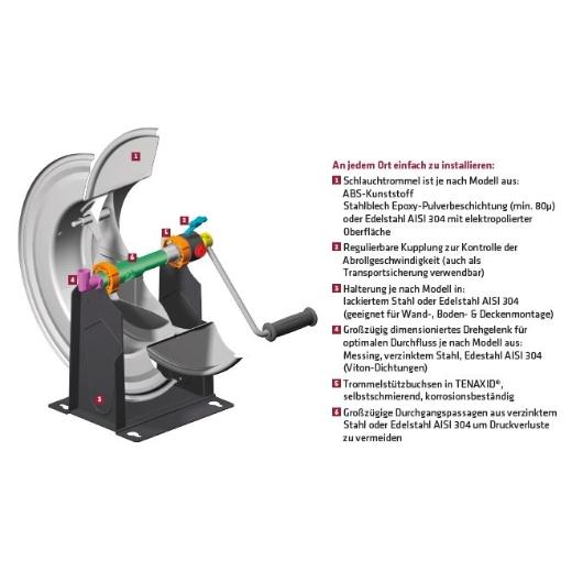 Produktbeschreibung ELMAG Manueller Schlauchaufroller Edelstahl Serie 540