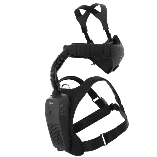 - Y-Schlauch mit verstellbarem Nackenband und flexiblen Schlauchelementen führt die Luft auf direktem Weg in die Halbmaske