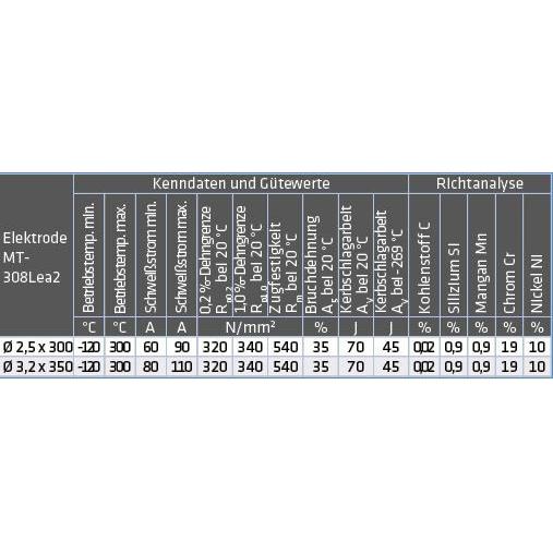 Technische Spezifikation ELMAG Schweißelektr. MT-308L / ea2 (1.4316)